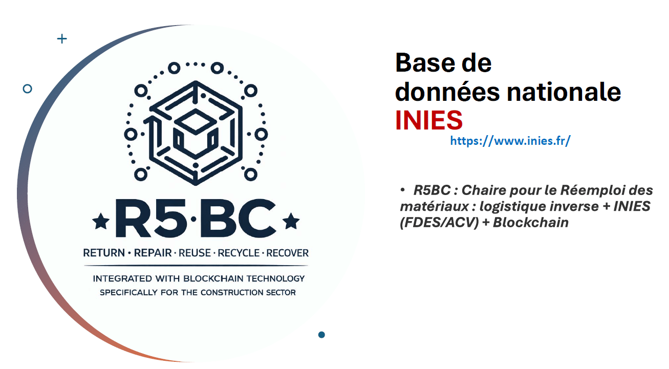 La Chaire R⁵BC combine logistique inverse et blockchain pour transformer la gestion des matériaux dans le BTP. Elle exploite la base INIES pour garantir une traçabilité complète et favorise le réemploi, le recyclage et la réduction des déchets.