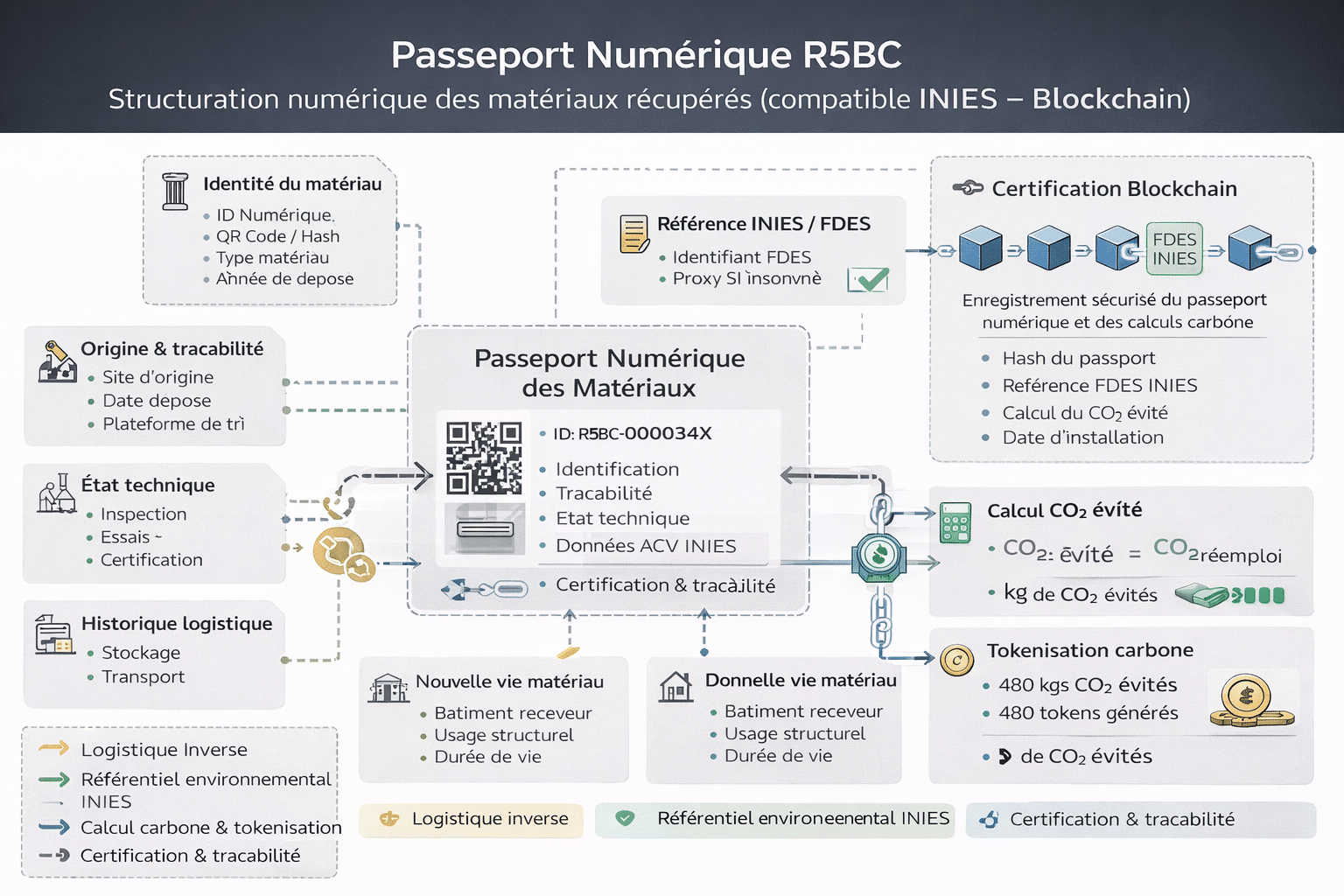 Logistique inverse + INIES (FDES/ACV) + Blockchain (traçabilité)